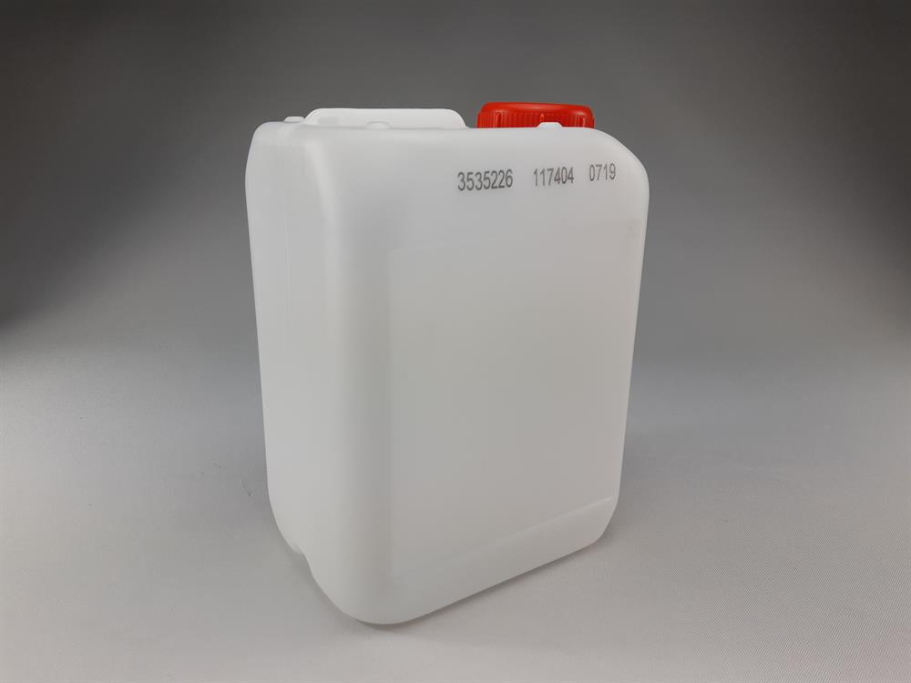 5 liters kraftig stabelbar plastdunk med rød prop, genbrug