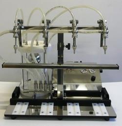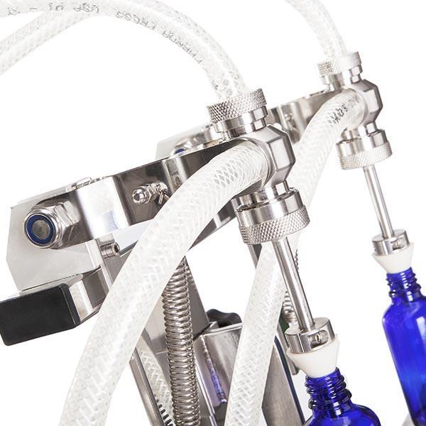 Starter automatisk når flasken presses mod påfyldningsaggregatet og stopper når flasken er fyldt til det ønskede niveau da apparatet har en justerbar påfyldningsindstilling. Både påfyldningsvolumen og højden på flasken kan justeres. Kan fylde flasker med en indre diameter i flaskehalsen fra min. 8 til max. 22 mm. Kan tilpasses højden på flaskerne ved at justere underlaget flaskerne stilles på.