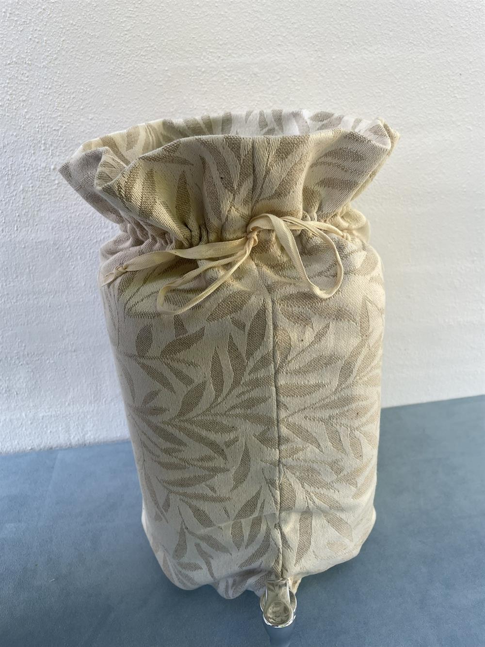 Vineddikkrukke af glas med tappkran, overtræk med bladmotiv, 8 liter